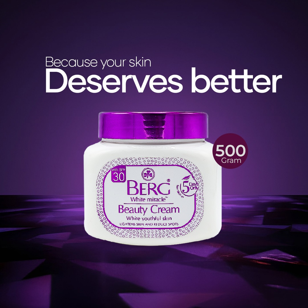 Berg white miracle beauty cream is an effective product for clearing skin imperfections. This formula works as an anti-aging serum that helps reduce dark spots and sun spots. The cream can help transform stained skin into smooth, clear, youthful skin.