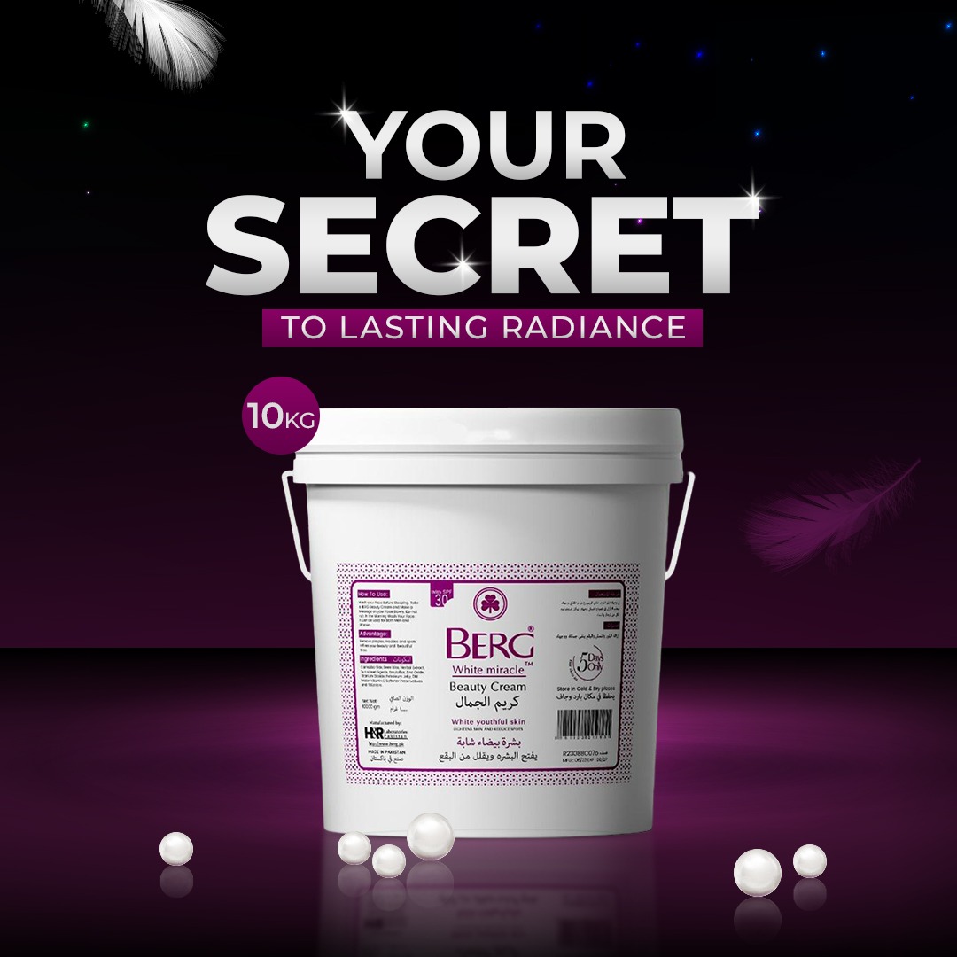 Unlock the secret to a radiant complexion with BERG White Miracle Beauty Cream. This massive 10KG bulk container is designed to provide “Advanced care for smooth luminous skin,” making it perfect for long-term use or professional salons. The formula is enriched with SPF 30, offering essential protection against the sun while working to reveal “White youthful skin”.