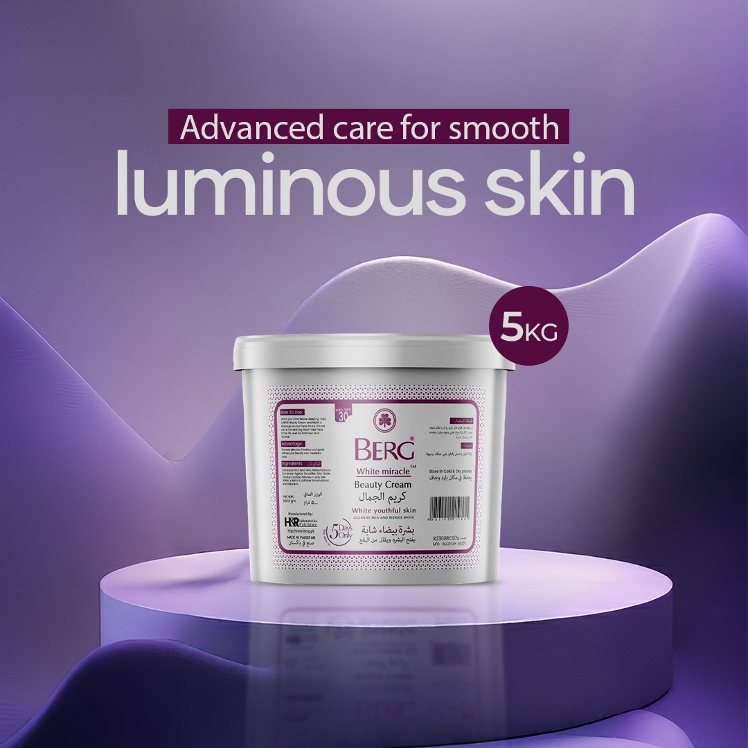 Unlock the secret to a radiant complexion with BERG White Miracle Beauty Cream. This massive 5KG bulk container is designed to provide “Advanced care for smooth luminous skin,” making it perfect for long-term use or professional salons. The formula is enriched with SPF 30, offering essential protection against the sun while working to reveal “White youthful skin”.