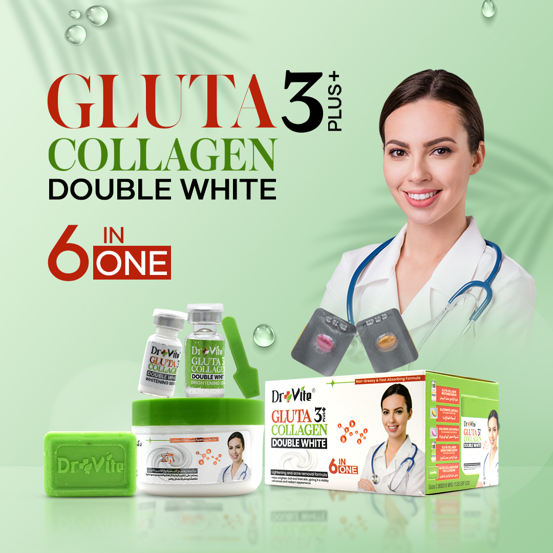 Reveal your brightest, clearest skin with the Dr. Vite Gluta 3 Plus+ Collagen Double White system. This professional 6-in-1 kit is scientifically formulated to target dullness, acne, and tired skin. By combining the potent whitening effects of Glutathione with the firming power of Collagen, this set delivers a visibly refreshed and radiant complexion.